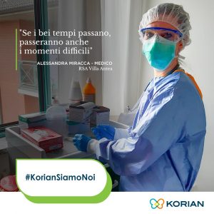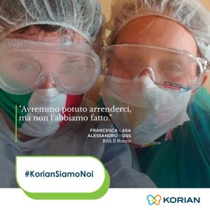 Professionisti che si sono messi in gioco con coraggio, fatica ed intraprendenza. Donne e uomini coraggiosi che hanno combattuto in prima linea contro l’epidemia al fianco dei pazienti e degli ospiti del Gruppo, tanto da poter esclamare con fierezza “Korian siamo Noi”.