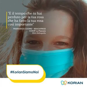 Ed è proprio da questo motto che nasce la rubrica “Korian Siamo Noi”: una rassegna che ha l’obiettivo di presentare volti, parole ed emozioni dei protagonisti di queste dure settimane, dove ognuno ha dato il meglio di sé senza mai arrendersi. Mettendo, proprio come nella filosofia del Gruppo Korian, il paziente sempre al centro.